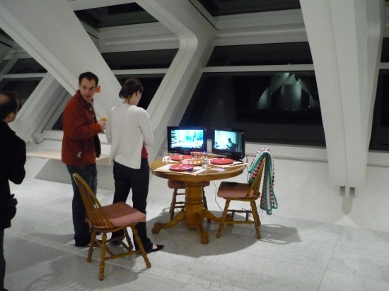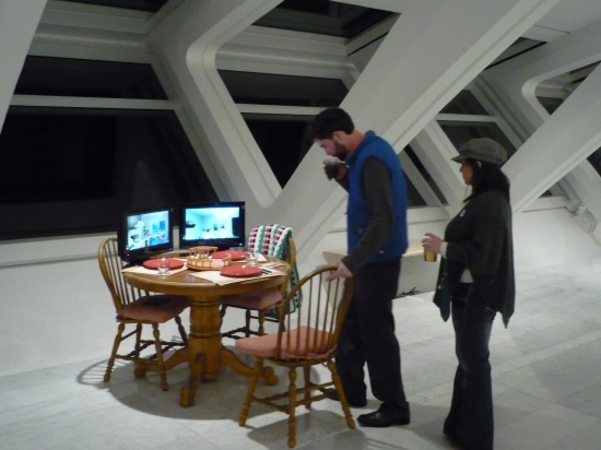 Dinner of Progress™ is a multi-channel installation that examines modern communication, and how it is more convenient but less intimate than face-to-face interactions.