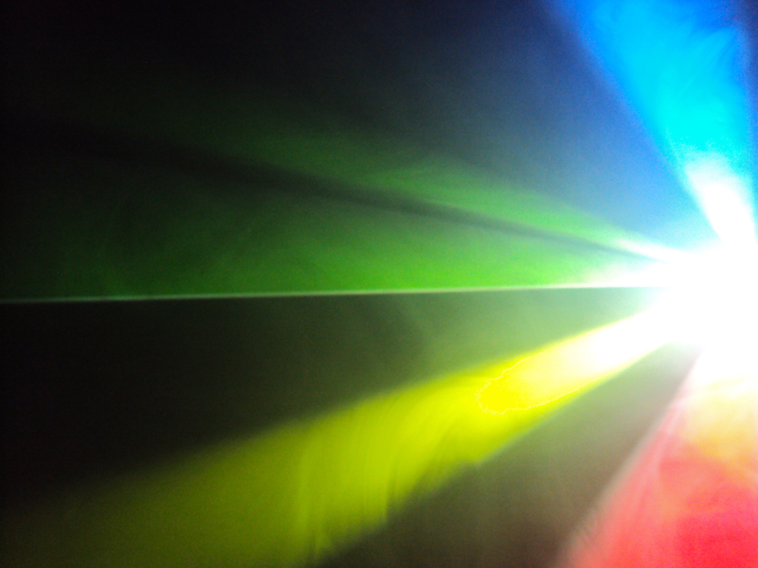Light as a Particle was designed as an interactive installation; an environment that reacts to bodily interaction. Rotating pillars of light extend from the ceiling and change color and direction when the user interacts.