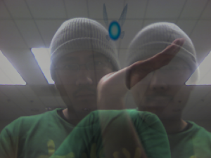 Beside Myself is an interactive video piece that is projected onto a large flat surface. A video projector displays a live video feed from a camera facing the viewer, enabling the image to work like a sort of mirror. When a user walks into the view of the camera, they will see themselves in the projection. After a few short seconds, they will then see a delayed version of the video together with the live version. They will be seeing two images of themselves: the live and the delayed. The motivation for adding a delayed image is to give the user(s) a slightly different perspective of themselves.