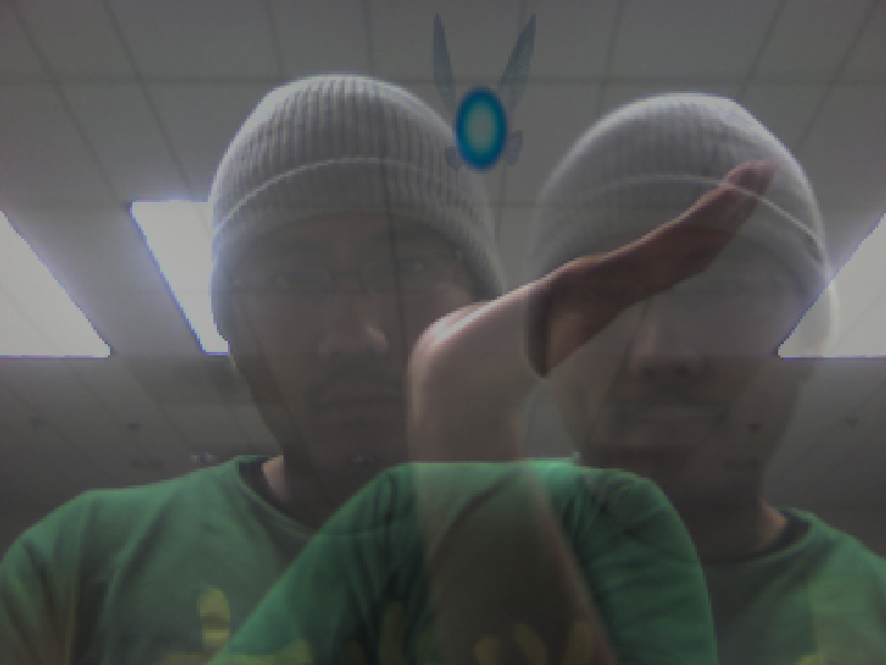 Participants will also be able to interact with a digitally super-imposed object that reacts to the movements of the user(s). When the image of the user touches the object in the projection, the shape or object will move and change direction depending on how and where the object was “touched.” This kind of interaction may momentarily move the user’s focus away from their own reflection. After a short time I hope that they begin to notice how they have been moving when they look back at the delayed image.